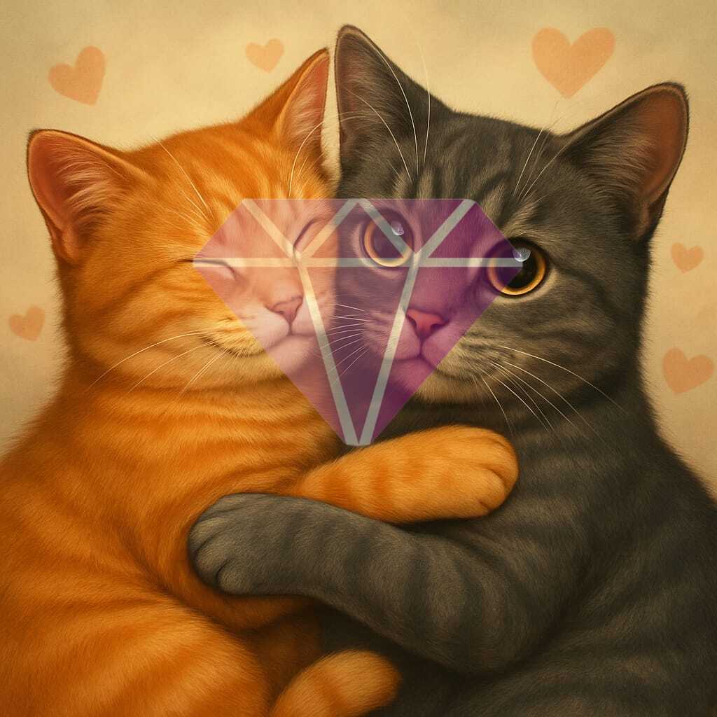 🐱 Purrfect Hug da coleção Cuteness Unleashed by DJPinyPon, em exclusivo para a Diamond Painting Portugal, esta obra encantadora retrata dois gatinhos adoráveis num abraço cheio de ternura. Com pelagem suave, olhos expressivos e um fundo repleto de corações delicados, a cena irradia carinho e pura alegria. Um diamante translúcido sobreposto acrescenta um toque de brilho a este momento doce, tornando-o uma homenagem perfeita à amizade felina.