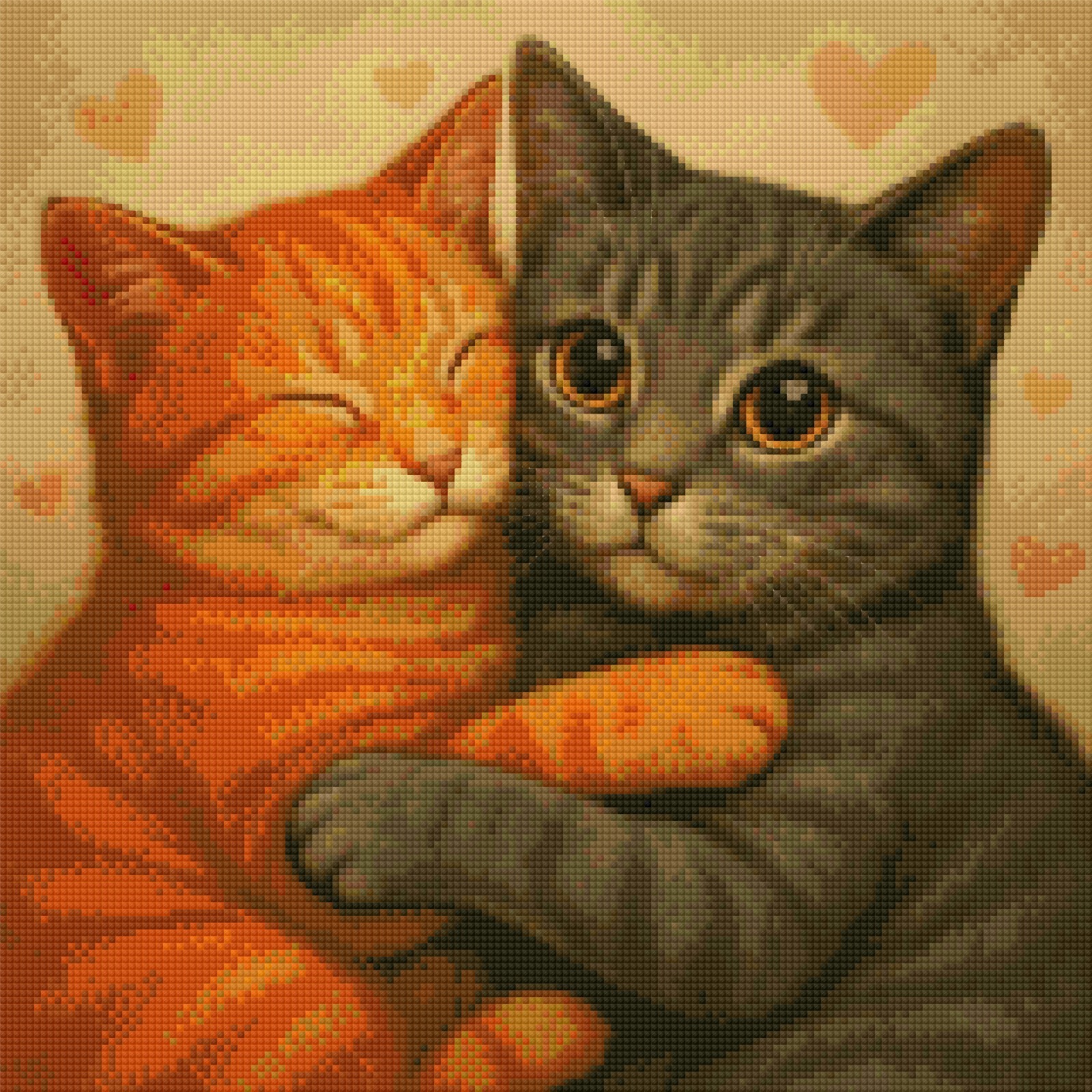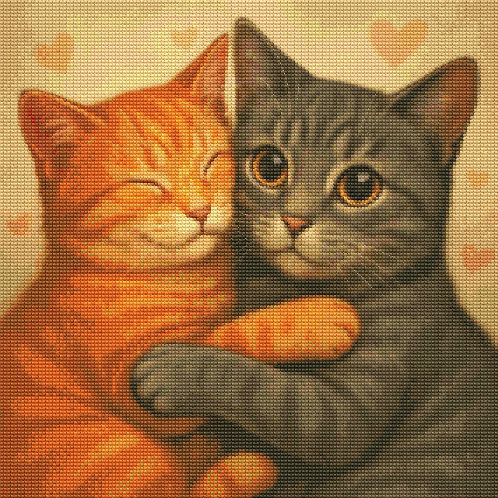 🐱 Purrfect Hug from the Cuteness Unleashed collection by DJPinyPon, exclusive for Diamond Painting Portugal, this heartwarming artwork captures two adorable cats in a loving embrace. With soft fur, expressive eyes, and a background filled with delicate hearts, the scene radiates affection and pure joy. A translucent diamond overlay adds a touch of sparkle to this tender moment, making it a perfect tribute to feline friendship.