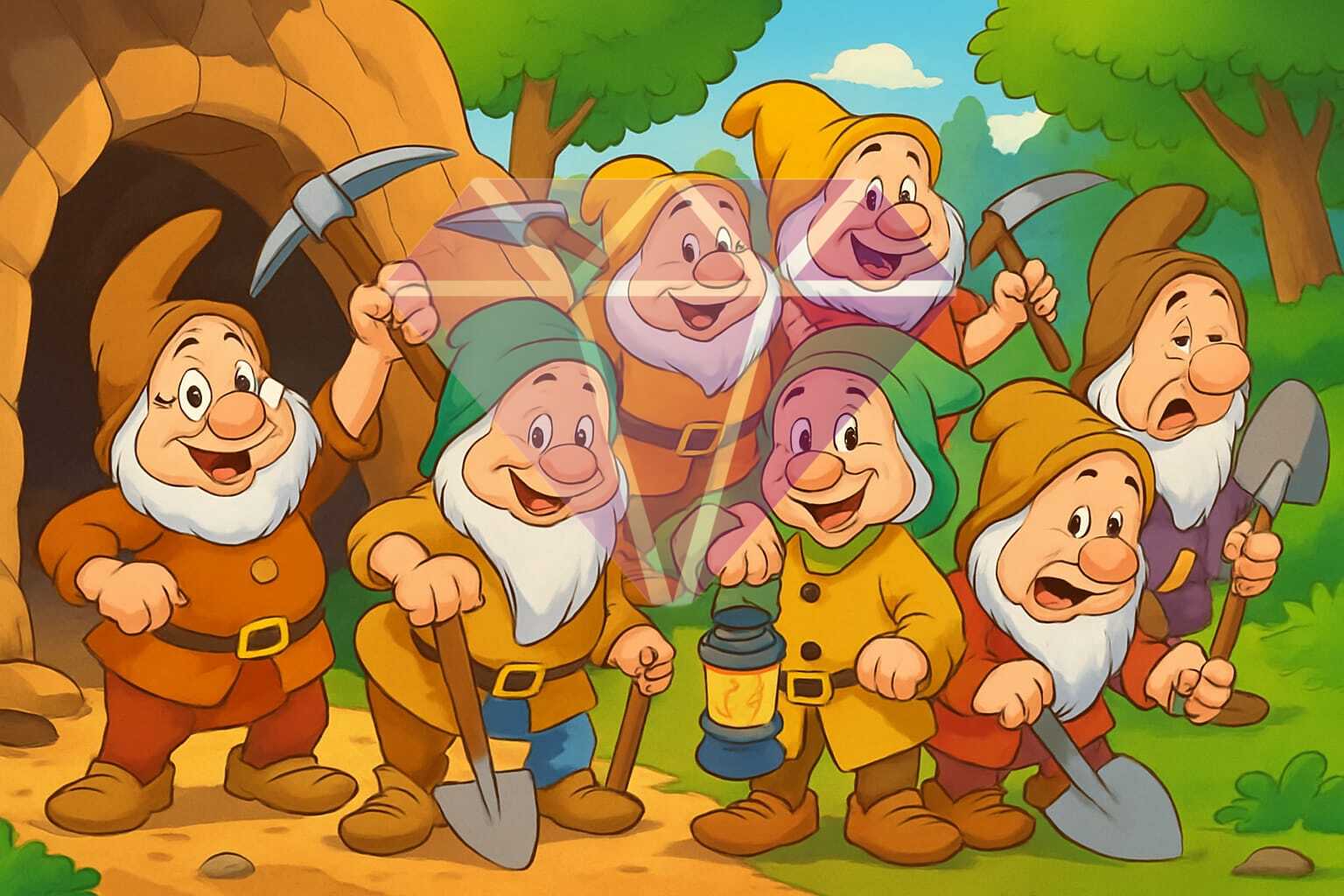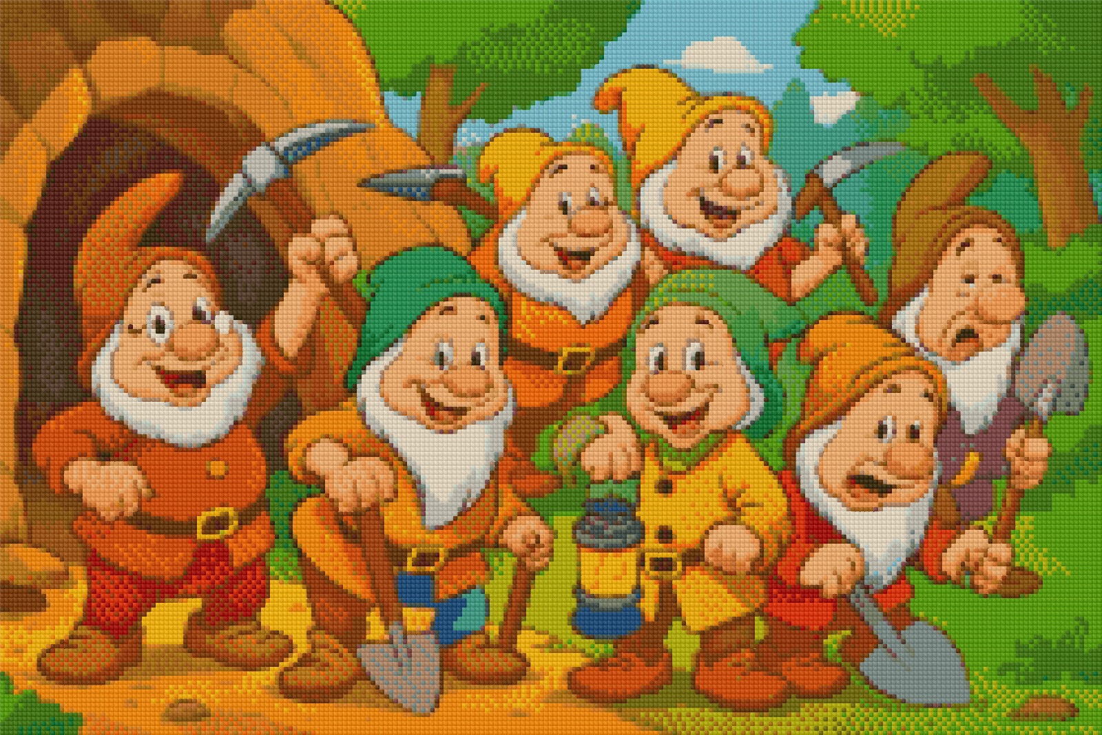 Step into a magical woodland scene with this enchanting canvas from the Fairy Tale Sparkles collection by DJPinyPon exclusive for Diamond Painting Portugal. The seven dwarfs come to life, ready for another forest adventure, each with their own tools and charming expressions. Surrounded by lush greenery, a bright blue sky, and the mysterious cave they guard, every character shines like a unique gem. As you place each diamond, vibrant details and whimsical textures emerge, turning this project into a true celebration of friendship, teamwork, and fairy tale magic.