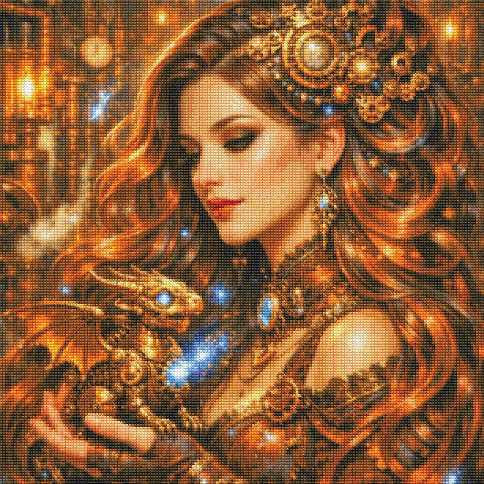 Warm tones, metallic textures and a magical industrial atmosphere make this canvas perfect for anyone who loves fantasy with a futuristic twist. Every element glows like embers trapped in metal, creating a bold, captivating and visually striking piece.
