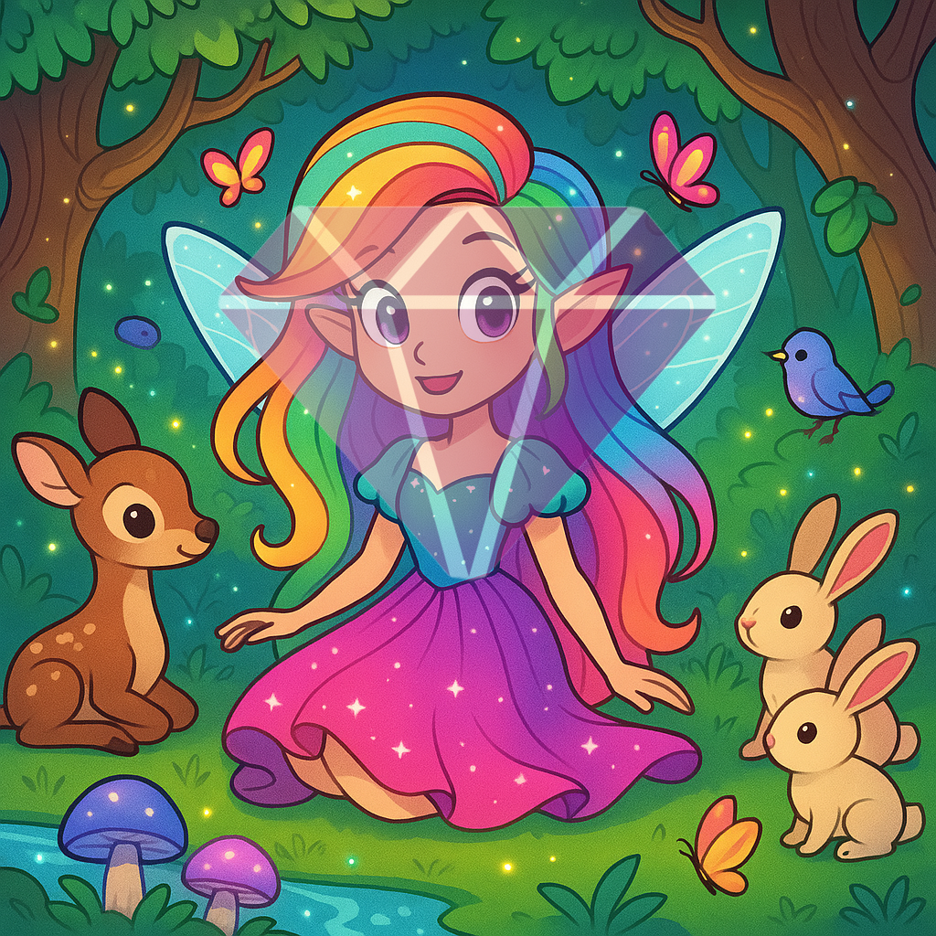 Mergulha num mundo de magia com esta tela encantadora da coleção Fairy Tale Sparkles by DJPinyPon em exclusivo para a Diamond Painting Portugal. Uma fada de cabelo arco-íris repousa serenamente entre os animais da floresta — um veado curioso, coelhinhos ternurentos, borboletas cintilantes e um passarinho azul — todos reunidos num cenário de conto de fadas. Os cogumelos coloridos, o riacho sereno e as luzes brilhantes criam uma atmosfera de sonho, perfeita para dar vida com cada diamante colocado. Uma celebração da natureza, da fantasia e da ternura, ideal para quem adora projetos que contam histórias mágicas.