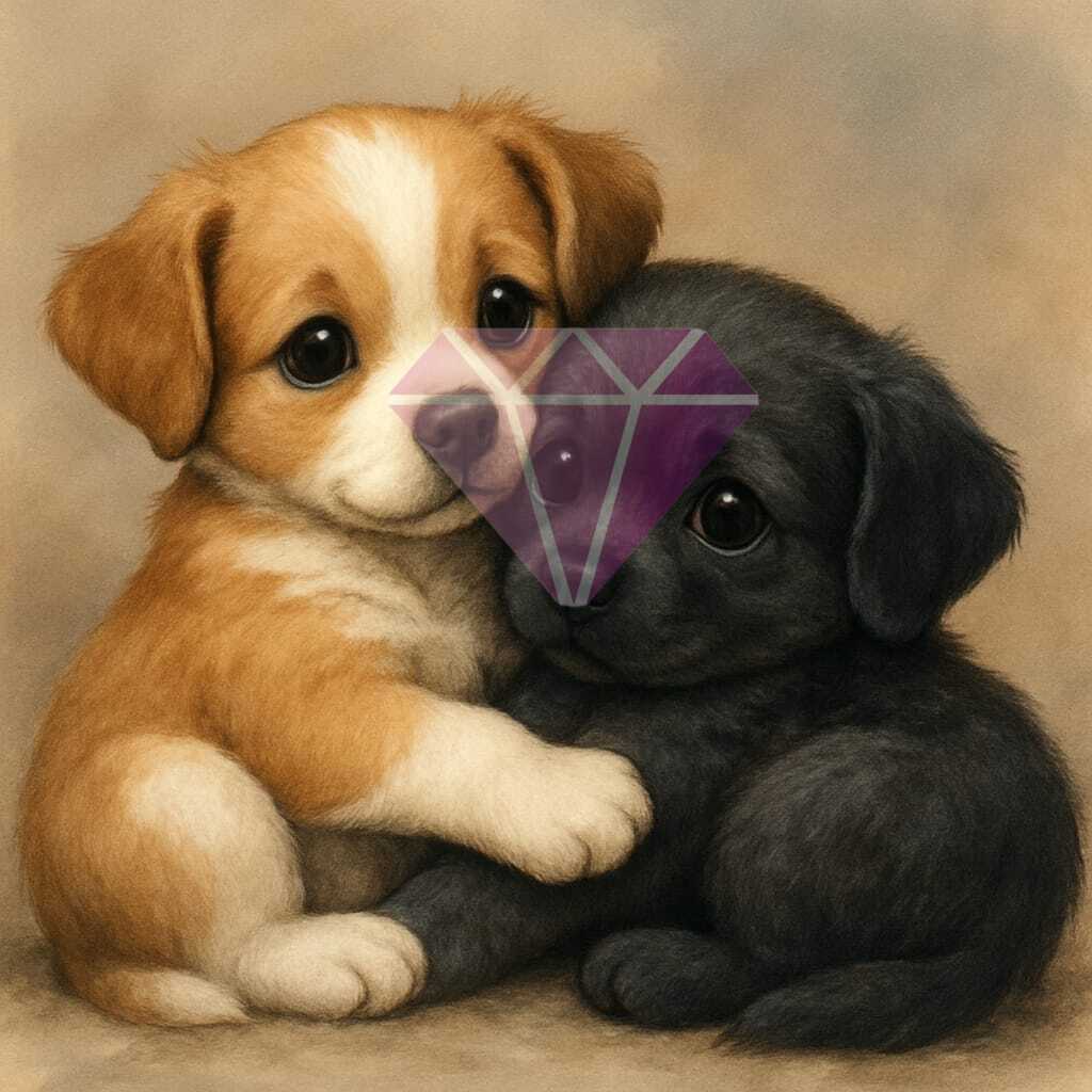 🐕Puppy Snuggles diretamente da coleção Cuteness Unleashed by DJPinyPon em exclusivo para a Diamond Painting Portugal, esta cena encantadora mostra dois cachorrinhos aconchegados num abraço cheio de ternura. Com pêlo fofinho e uma pose que derrete corações, esta tela convida-te a entrar num mundo onde o amor é simples, puro e cheio de rabinhos a abanar. Perfeita para quem acredita que a felicidade começa com um abraço (e uma patinha)!