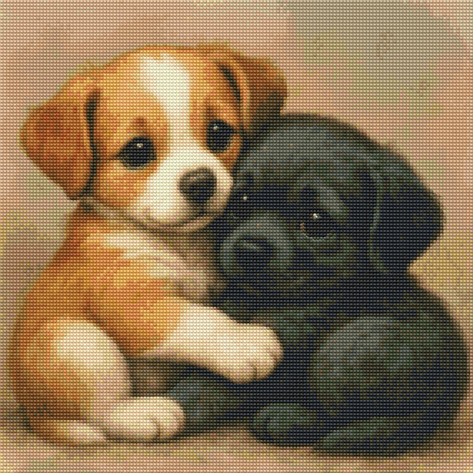 🐕Puppy Snuggles from the Cuteness Unleashed collection by DJPinyPon exclusive for Diamond Painting Portugal comes this heartwarming scene of two tiny pups wrapped in the sweetest cuddle. Their soft fur and gentle pose invite you into a world where love is simple, pure, and full of wagging tails. A must-have for anyone who believes that happiness starts with a hug (and a paw)!